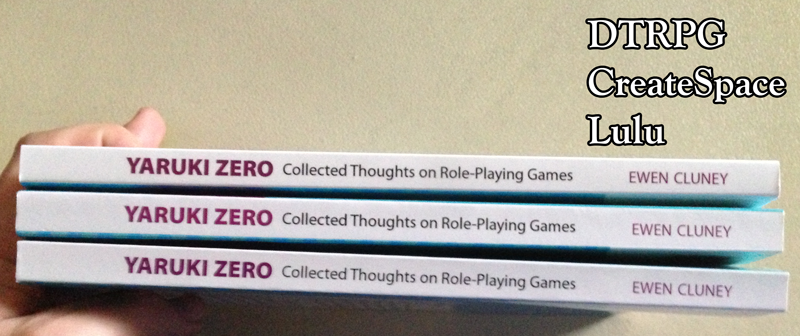 ykz_cover_previewThe Yaruki Zero book is both a thing I wanted to write and kind of an experiment in learning self-publishing for other, more serious projects. The plan was to put the book up on just about every POD and ebook sales service around, and this is a rather long and detailed journal of what I went through to make it happen, both for my own reference and to help anyone else who’s thinking of trying this stuff out. Later on I’ll see about putting together a follow-up post on how things are working out 6 months or so down the line. If you’re interested in the actual book, check out the Yaruki Zero: The Book page for links to all of the places I have it available for purchase.